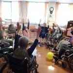 園で人気のレクリエーションの1つ風船バレーです。
